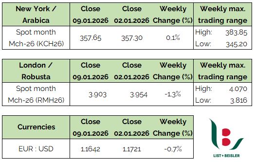 Hinzu kommt: Geopolitik, Makroökonomie und Wetter liefern weiterhin reichlich Stoff für kurzfristige Marktturbulenzen. Der Kaffeemarkt erlebt diese Volatilität derzeit nahezu im Wochenrhythmus. Die vergangene Börsenwoche spiegelte diese Nervosität wider:
